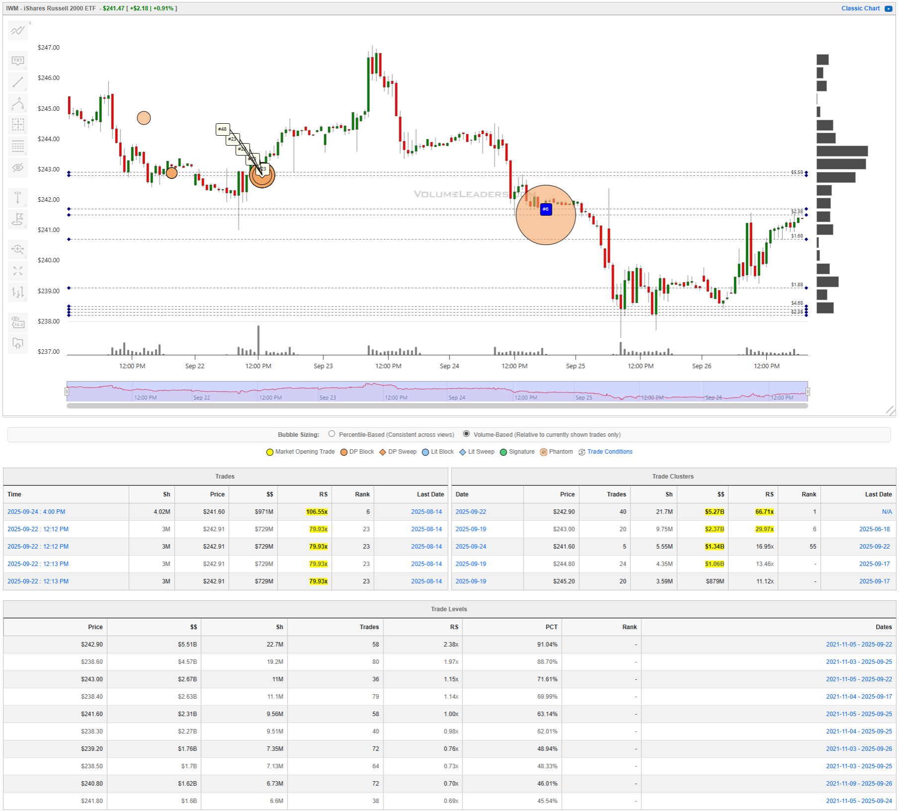 Bottom line here: the IO list confirms the same barbell the broader tape keeps advertising. There is real size in semis and compute with signs of quiet accumulation, a firm bid across uranium and selective precious-metal proxies, and continued reliance on broad wrappers to express allocation. Crypto is busy but choppy, leaning to reduction in miners while ETH/BTC wrappers churn. Biotech remains a live wire with event-driven spikes that indicate risk capital is still engaged. If semis keep printing high-sigma dollars without price damage, uranium stays bid, and index wrappers continue to absorb size, the path of least resistance remains a growth-led grind with hard-asset ballast, exactly the posture implied by this week’s institutional flow.
