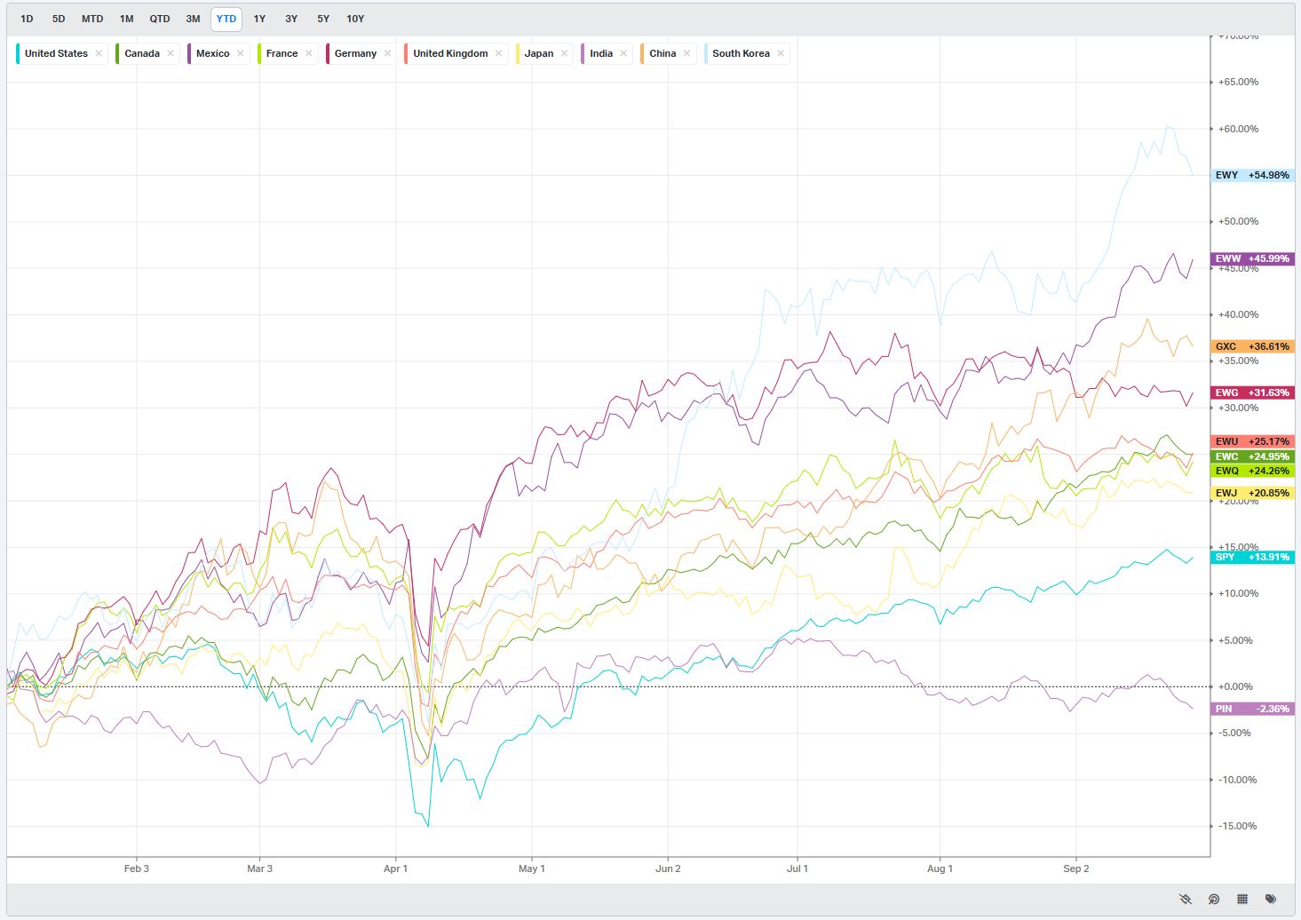 In emerging markets, India underperformed after the administration announced $100k HB1 Visa Fees, while Argentina stood out after a U.S. bailout was outlined for President Milei following recent political losses. Treasury Secretary Bessent said the U.S. Treasury “stands ready to purchase Argentina’s USD bonds and will do so as conditions warrant. We are also prepared to deliver significant stand-by credit via the Exchange Stabilization Fund, and we have been in active discussions with President Milei’s team to do so.” Midterm elections there are slated for the end of October.