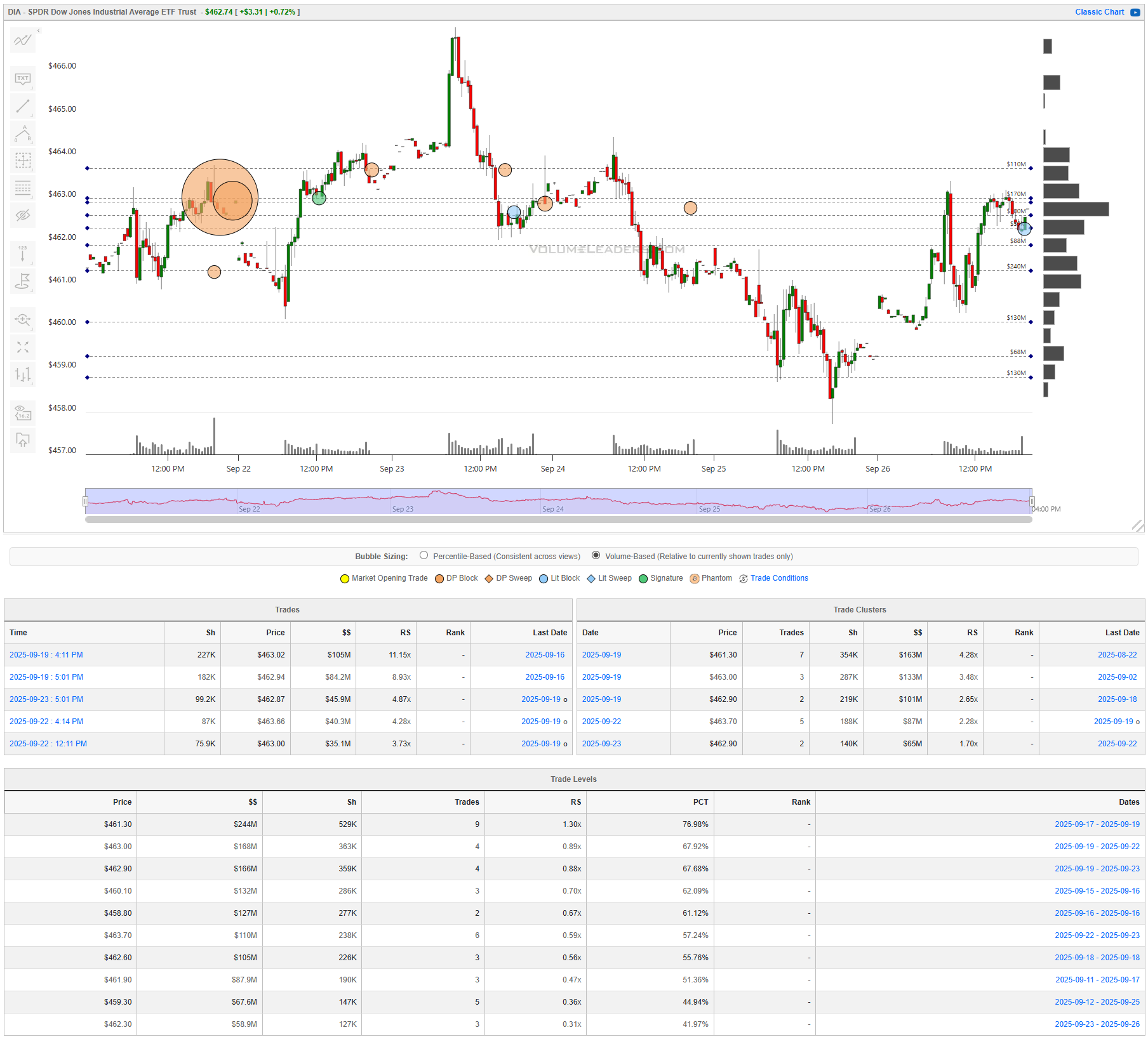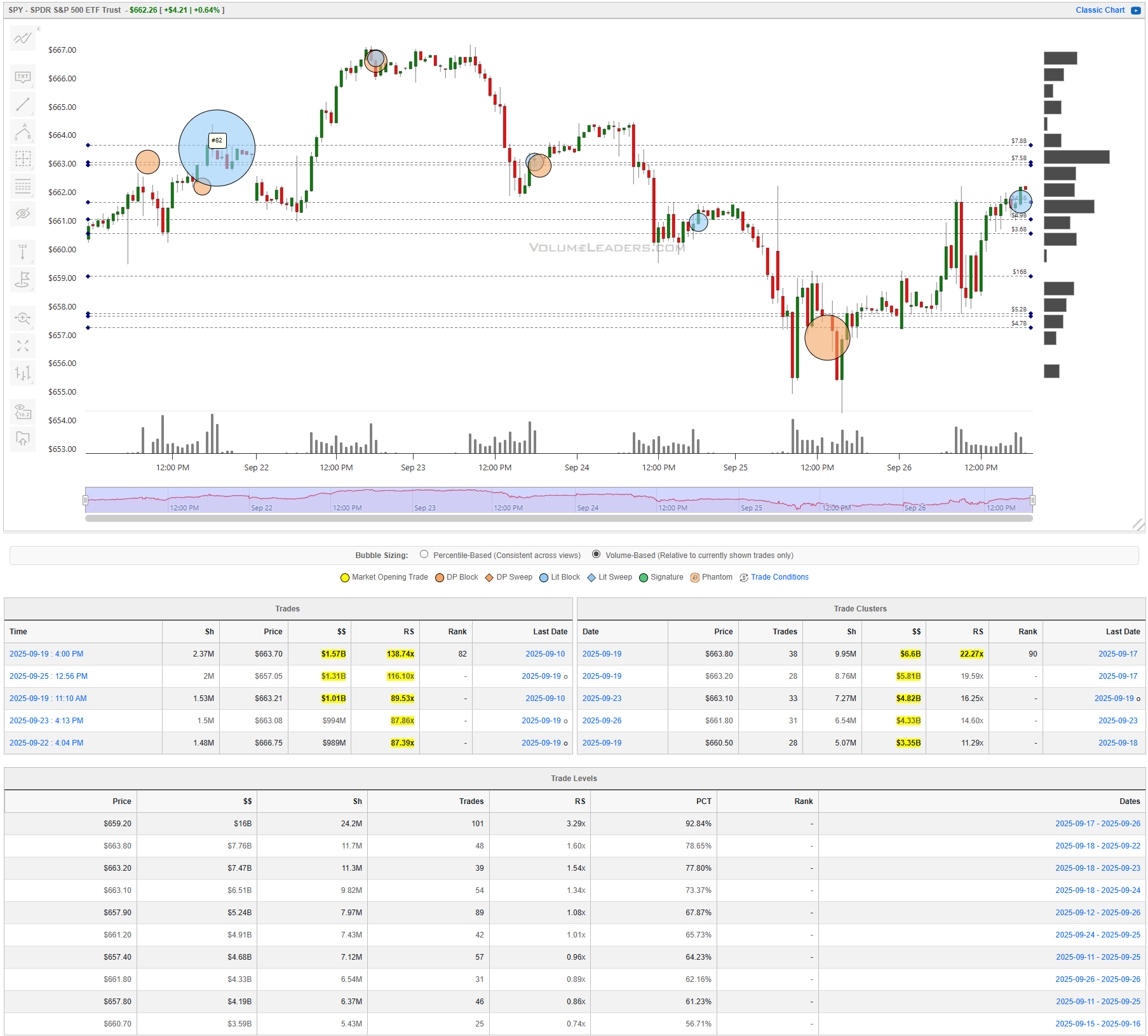 These are the most frequently traded #1-Ranked Levels in VL this week. Trades occurring at the highest volume price in a ticker’s history are significant because they represent institutional engagement at a key price memory level—where the market once found consensus. These areas act as liquidity hubs, enabling large players to transact efficiently, and often signal a reassessment of fair value. This activity may precede major moves, mark equilibrium zones, or reflect broader portfolio shifts, making these price levels important to watch even without yet knowing how price will resolve. (Note: many Bond products trade in such a tight range that they dominate the top positions and are therefore omitted to provide better clarity around other flows. The bonds data is still available in the VL platform.)