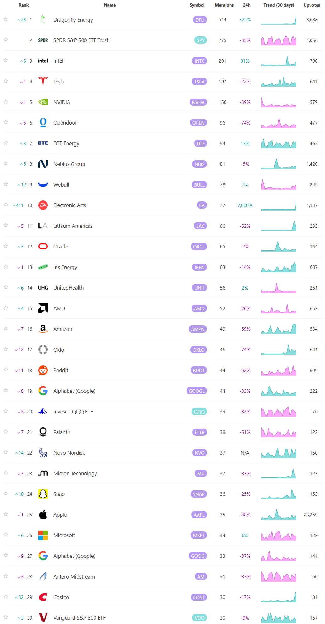 Netting it down, the list says the same thing the institutional flow said: the street is running a pro-growth play with semis and software as the backbone, resources as the ballast, and defensives on a short leash in case rates wobble. Bonds are active enough to matter, crypto toggles are a live risk dial, and the presence of levered single-name wrappers on the AI complex is a feature, not a bug—it’s how you keep pressing upside without giving the tape your stop. If this mix persists—tech breadth stays wide, NOV/FTI and the miners keep showing up, FLTR remains busy, and the REIT/utility pair holds a bid—the path of least resistance is still higher with a barbell that’s working.