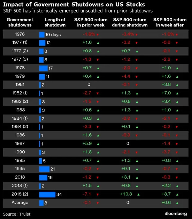 The shutdown introduces a new variable: delayed government data, starting with the monthly payroll report that did not publish Friday and potentially the inflation data slated for October 15 if the disruption lingers. The White House warned that, if the shutdown extends, employees in programs that do not align with President Trump’s priorities could face dismissals. Bloomberg Economics estimates that 640,000 federal workers will be furloughed during a shutdown, a dynamic that would lift jobless claims and push the unemployment rate up to 4.7% if it persisted. Markets will be forced to lean harder on private-sector data for the next stretch, and that shift alone can elevate day-to-day noise, especially when macro messaging from the Fed skews cautious.