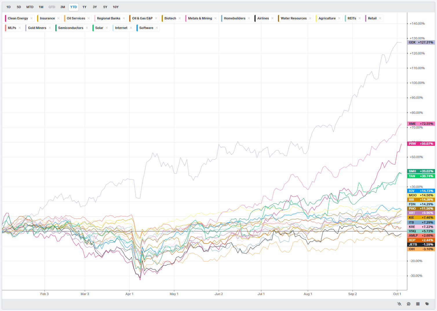 Normalized Performance By Thematics YTD: Which corners of the markets are beating benchmarks, which are overlooked and which ones are over-crowded!
