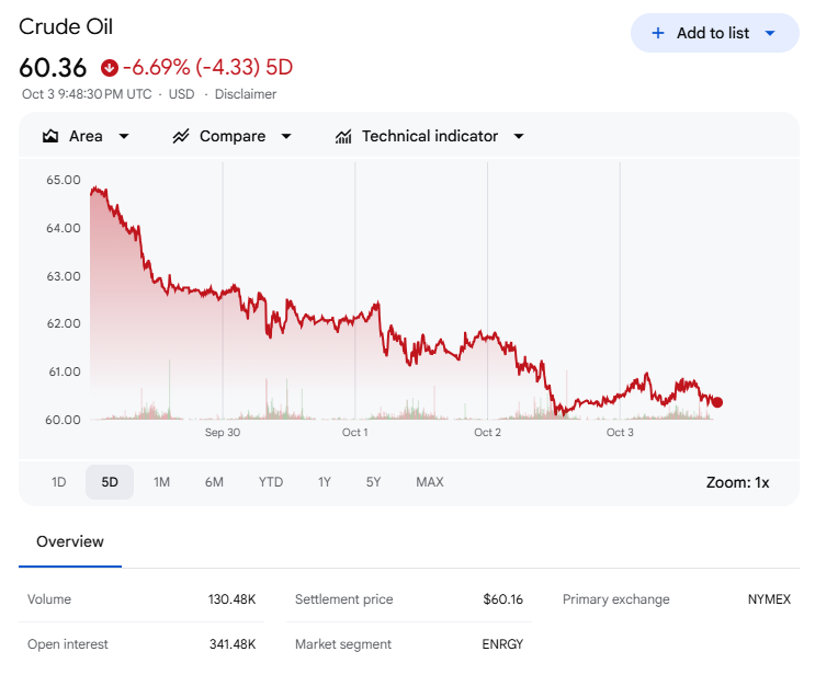 Materials sat mid-pack, but miners broadly rallied, led by lithium on Lithium Americas (LAC) deal news with the U.S. government. Coal names like Peabody Energy (BTU) rose +30%, copper bellwether Freeport-McMoRan (FCX) rose +12%, and steel names Cleveland-Cliffs (CLF), Steel Dynamics (STLD), and ArcelorMittal (MT) added roughly +3%. Energy lagged as oil fell. Crude weakness came alongside concerns about supply and potential OPEC production increases. Communication Services lagged with Meta Platforms (META) leading the sector lower and Alphabet (GOOGL/GOOG) weaker to a lesser extent.