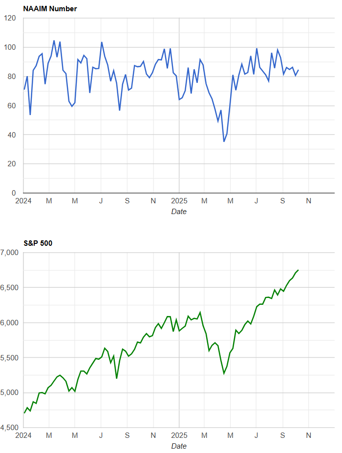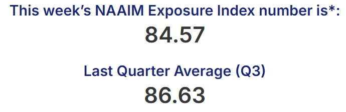 The NAAIM Exposure Index (National Association of Active Investment Managers Exposure Index) measures the average exposure to U.S. equity markets as reported by its member firms. These are typically active money managers who provide their equity exposure levels weekly. The index offers insight into how much these managers are investing in equities at any given time, ranging from being fully short (-100%) to leveraged long (up to +200%).