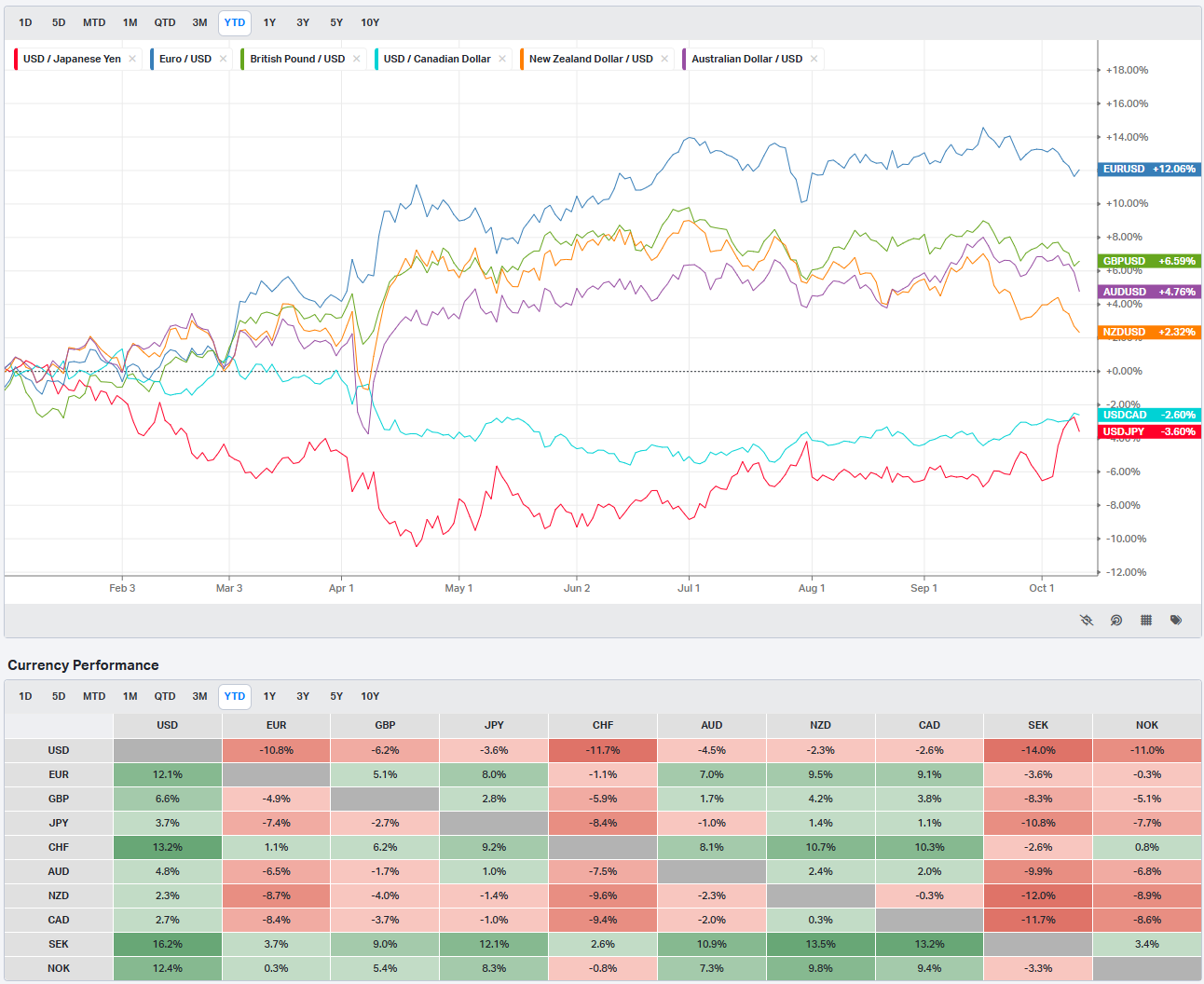 Overseas markets finished lower Friday. The Euro Stoxx 50 closed down -1.68%. China’s Shanghai Composite closed down -0.94%. Japan’s Nikkei Stock 225 closed down -1.01%. Europe set fresh records earlier in the week before the same tariff shock hit just ahead of the Friday close. France struggled early after the resignation of yet another Prime Minister—Lecornu’s departure on Monday marked the third since December and the shortest modern tenure at less than one month—before stabilizing alongside broader European indices. European rates initially jumped on French political headlines, then fell with global yields. German data were weak: August Factory Orders declined unexpectedly and Industrial Production dropped more than expected. Asia’s week was holiday-affected, with China mainland markets closed until Thursday and Hong Kong under pressure with Technology stocks (including Alibaba (BABA) and Baidu (BIDU)) down about 10% on valuation worries. Japan outperformed earlier in the week; equities and JGB yields rose after the election of Sanae Takaichi as LDP leader and likely new Prime Minister on a pro-growth platform, and finance officials jawboned yen weakness with implied intervention risk. Emerging markets were largely holiday-sidelined; South Korea was closed until Friday. Argentina popped after the U.S. bought Argentine pesos and opened a swap line to stabilize markets.