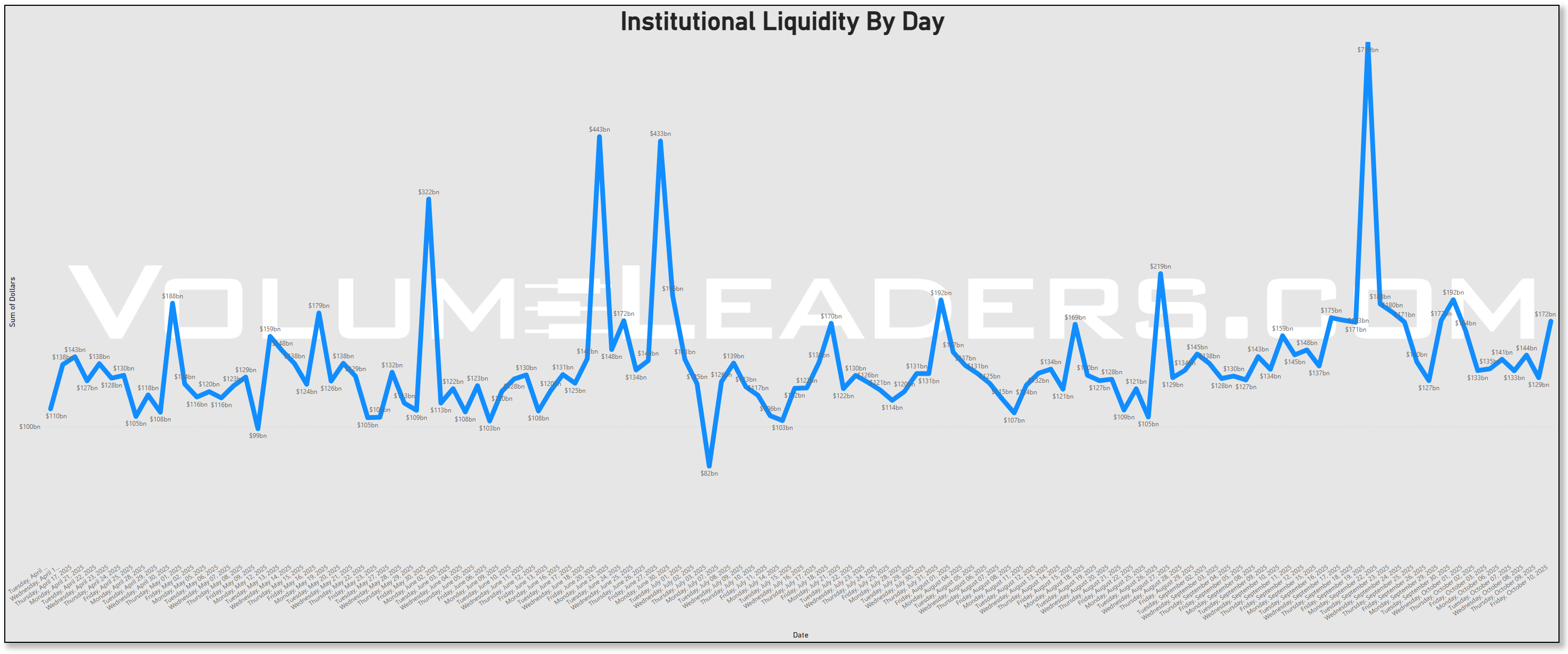 These are the most frequently traded #1-Ranked Levels in VL this week. Trades occurring at the highest volume price in a ticker’s history are significant because they represent institutional engagement at a key price memory level—where the market once found consensus. These areas act as liquidity hubs, enabling large players to transact efficiently, and often signal a reassessment of fair value. This activity may precede major moves, mark equilibrium zones, or reflect broader portfolio shifts, making these price levels important to watch even without yet knowing how price will resolve. (Note: many Bond products trade in such a tight range that they dominate the top positions and are therefore omitted to provide better clarity around other flows. The bonds data is still available in the VL platform.)