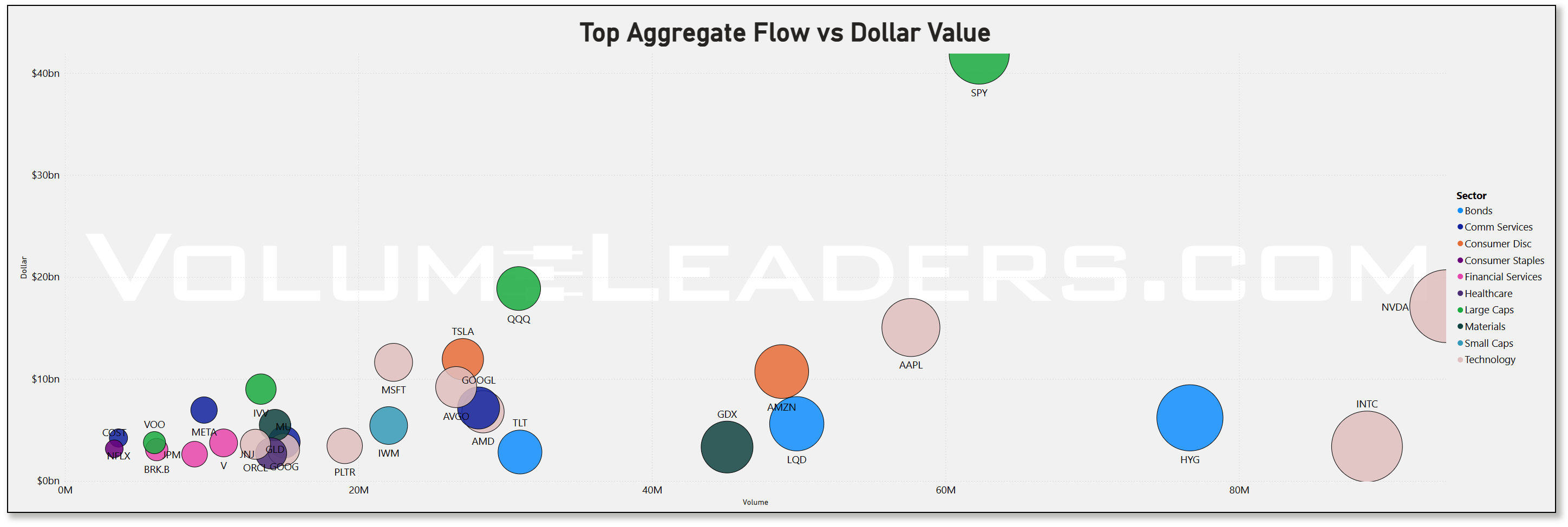 Market Intelligence Report: Track the real money. This section breaks down where institutions are placing their bets—and pulling their chips. You'll get a sector-by-sector view of flows, highlighting the most active names attracting large-scale buying or selling. We go beyond the headlines and into the tape, surfacing the week’s most notable block trades and sweep orders, both on lit exchanges and hidden dark pools. Whether you're following momentum or fading crowded trades, this is your map to where size is moving and why it matters.