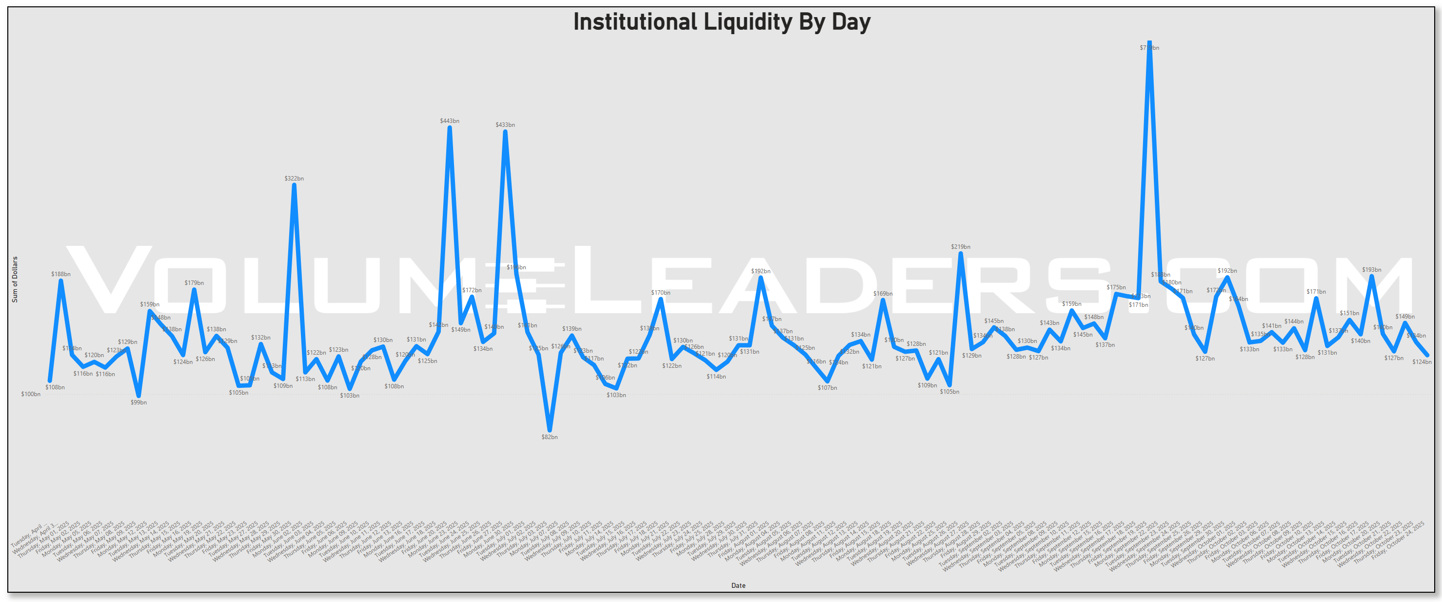 These are the most frequently traded #1-Ranked Levels in VL this week. Trades occurring at the highest volume price in a ticker’s history are significant because they represent institutional engagement at a key price memory level—where the market once found consensus. These areas act as liquidity hubs, enabling large players to transact efficiently, and often signal a reassessment of fair value. This activity may precede major moves, mark equilibrium zones, or reflect broader portfolio shifts, making these price levels important to watch even without yet knowing how price will resolve. (Note: many Bond products trade in such a tight range that they dominate the top positions and are therefore omitted to provide better clarity around other flows. The bonds data is still available in the VL platform.)