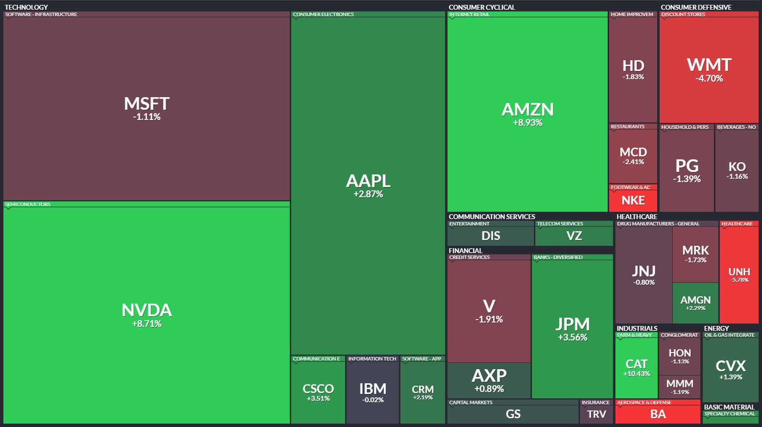 Underneath those index closes, the leadership dynamic continues to harden. The market is increasingly concentrated in a handful of names that investors now treat like essential infrastructure. Amazon.com (AMZN) closed up more than 9% on Friday after what can fairly be called blowout earnings and an upbeat outlook. Western Digital (WDC) closed up more than 8% after reporting Q1 net revenue above consensus. NVIDIA (NVDA) rallied and pushed its market capitalization above 5 trillion USD midweek, the first company ever to cross that line. NVIDIA briefly became the first company to crack the 5 trillion USD market capitalization threshold after Jensen Huang delivered the keynote address at the GTC conference, where he outlined partnerships and investments designed to accelerate progress in 6G networking, autonomous vehicles, robotics, and supercomputers.