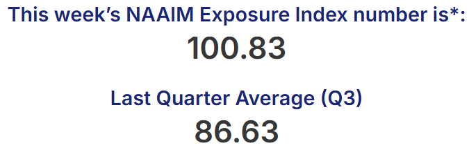 The NAAIM Exposure Index (National Association of Active Investment Managers Exposure Index) measures the average exposure to U.S. equity markets as reported by its member firms. These are typically active money managers who provide their equity exposure levels weekly. The index offers insight into how much these managers are investing in equities at any given time, ranging from being fully short (-100%) to leveraged long (up to +200%).