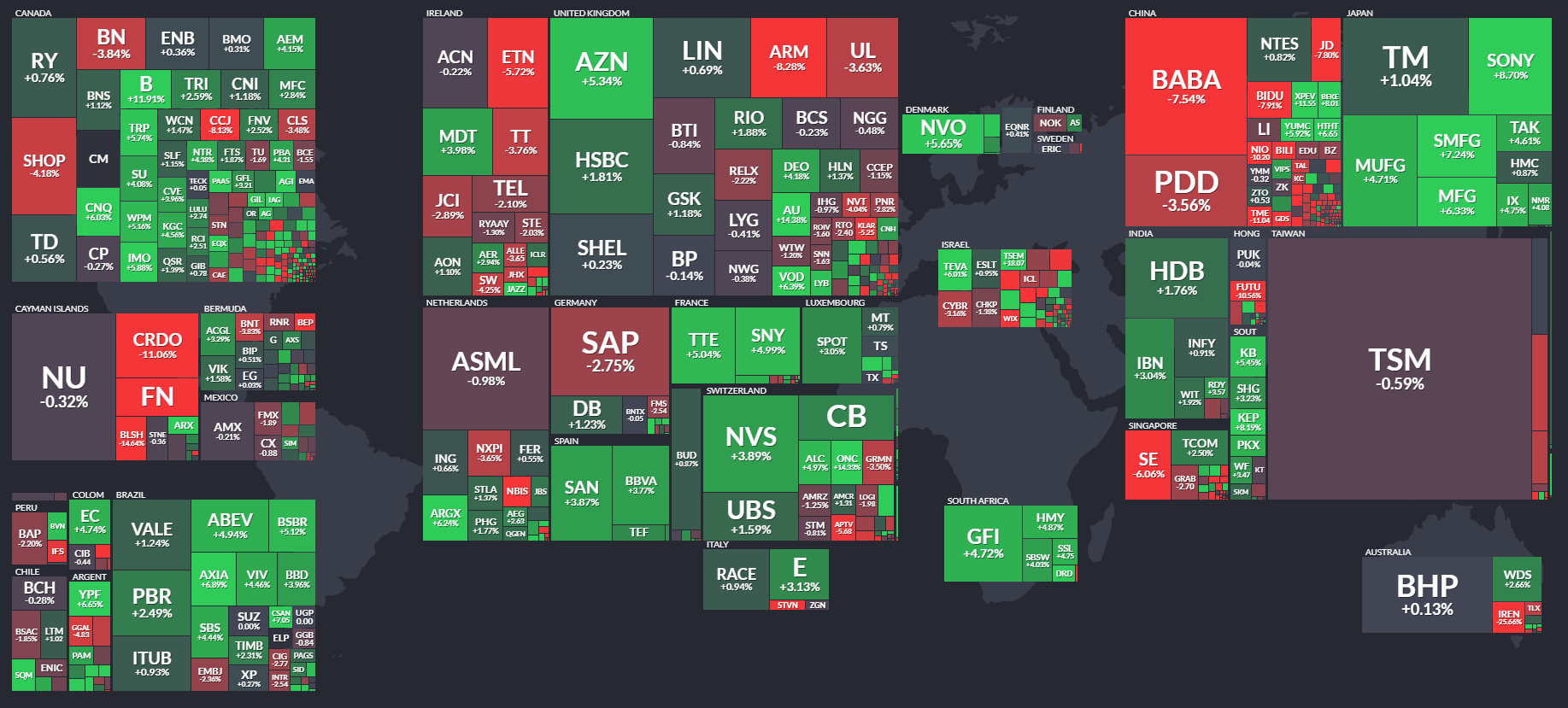 That is not a narrow meme chase; it is a full stack of AI-enabling hardware and software still drawing capital even as valuations and capex paths are being questioned. At the same time, the sector tree gives respectful square footage to Communication Services and Consumer Discretionary: Meta Platforms (META) and Alphabet (GOOG) both sit around the $4B–$5B mark, while Tesla (TSLA) near $12B and Amazon (AMZN) around $11B dominate the discretionary panel. The breadth tells you rotation is happening within growth rather than out of it entirely.