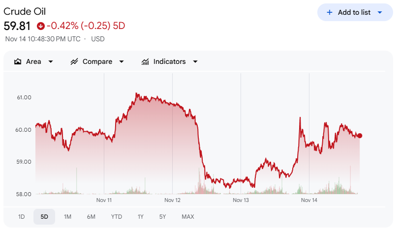 U.S. equity benchmarks ended the week mixed. The Dow Jones Industrial Average and the S&P 500 Index posted modest gains, while the Nasdaq Composite, the S&P MidCap 400, and the small-cap Russell 2000 all lost ground. On Friday, the pattern repeated intraday. Stocks opened weak, extending Thursday’s sell-off as investors digested the latest hawkish commentary from Federal Reserve officials and questioned whether a December rate cut is really in play. The Magnificent Seven technology names, which had been hit hard earlier in the week, recovered from early losses and finished the session mixed. Energy producers caught a bid as WTI crude rallied more than 2%, helping to offset pressure in growth and AI-exposed names.