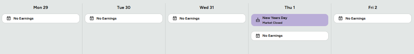 Thursday is New Years Day, and the market is closed. Friday shows no earnings and no major scheduled macro releases visible on the calendar, which means price action will be driven by positioning, liquidity, and reactions to earlier data rather than fresh information