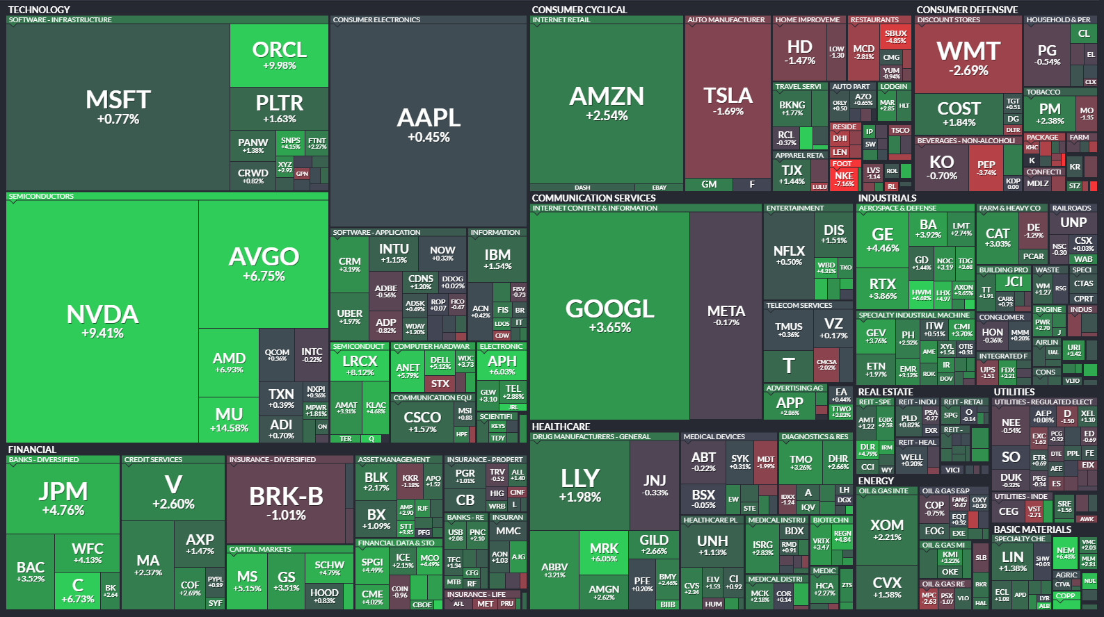 Sector performance on Friday reflected that calm. None of the 11 S&P 500 sectors moved more than +/-0.5%. Technology and materials showed slight outperformance, consistent with the broader themes driving 2025. One headline that caught attention was Nvidia’s (NVDA) investment in AI chip startup Groq, valuing the company at $20 billion just three months after it raised $750 million at a valuation of $6.9 billion. This marked Nvidia’s largest-ever investment, though it remains small relative to Nvidia’s own market capitalization. The strategic importance mattered more than the size. Groq was founded by a creator of Google’s (GOOGL) tensor processing unit, and its emergence challenges Nvidia’s dominance in AI accelerators. Nvidia shares responded positively, up more than +1.5%, while Alphabet hovered near unchanged.