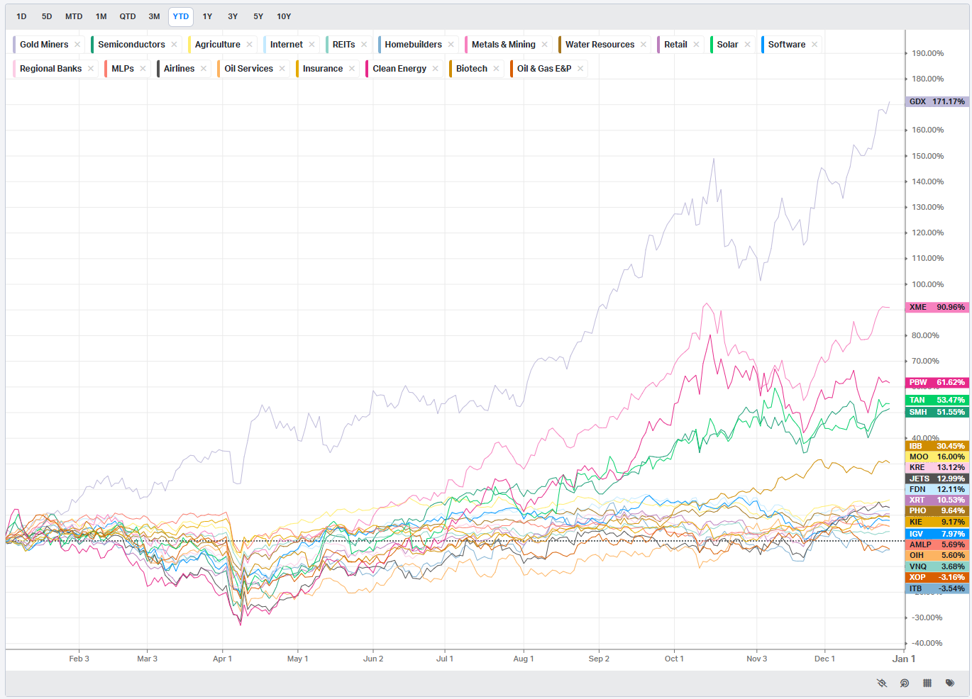 VolumeLeaders.com offers a robust set of pre-built thematic filters, allowing you to instantly explore specific market segments. These performance snapshots are provided purely for context and inspiration—think about zeroing in on the leaders and laggards within the strongest and weakest sectors, for example.