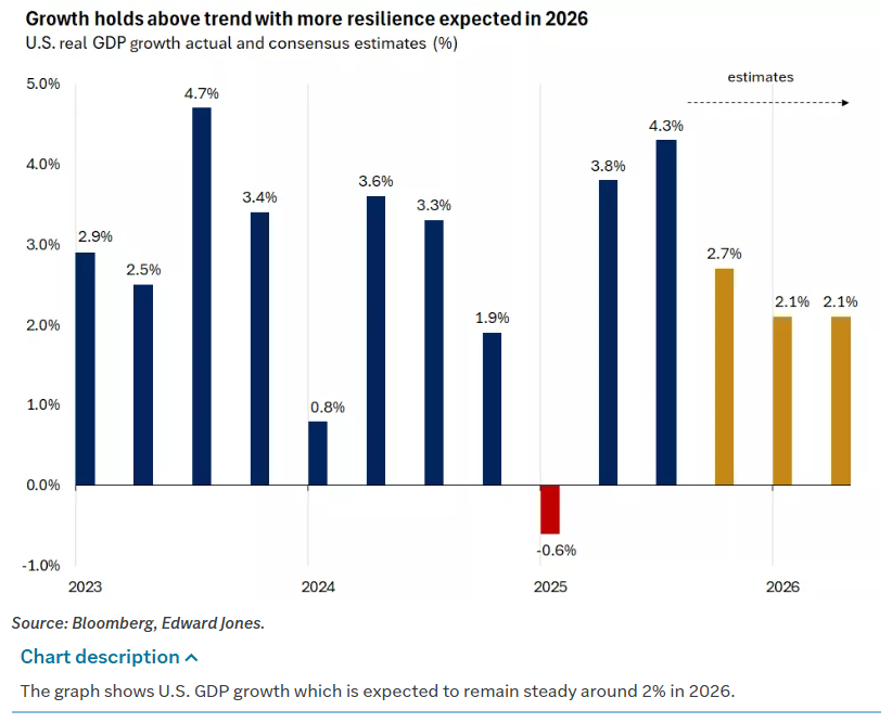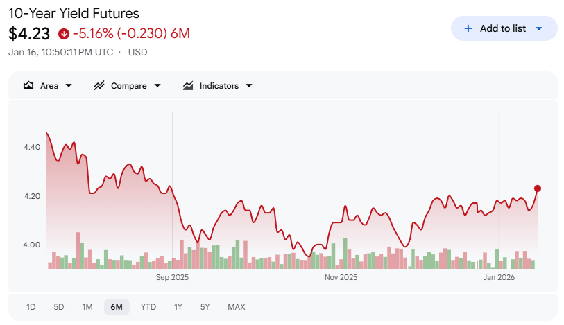 Equities, however, absorbed the rate move without drama. That resilience has been a defining feature of the early weeks of 2026. Even as yields rise and policy uncertainty builds, stocks have continued to trade as though the underlying economic engine remains intact.