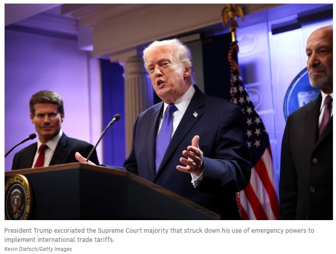 The past week gave us a pretty good snapshot of what this cycle has become: a market that wants to go up, but has to fight through a wall of macro headlines, policy uncertainty, and intermittent growth scares to get there. The headline event was the U.S. Supreme Court’s decision to strike down President Trump’s wide‑ranging IEEPA‑based tariffs, followed almost immediately by the administration’s move to re‑impose a 10% across‑the‑board tariff using Section 122. On paper that sounds dramatic. In practice, the equity market treated it as a modest clearing event rather than a shock. The S&P 500 finished the holiday‑shortened week around 6,910, up a little over 1%. The Dow ended near 49,626, up about 0.3%. The Nasdaq Composite did best, gaining about 1.5% and finally snapping a losing streak that had been in place since early January. Under the surface, sector rotation, factor chop, and macro nuance mattered a lot more than the headline tariff story.