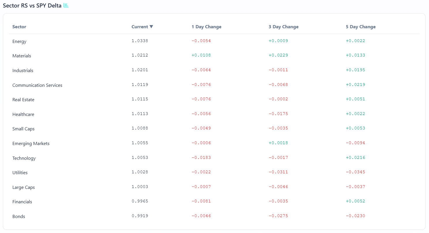 For day traders, this list is a powerful awareness tool. Sector Leaders tend to offer cleaner intraday structure, better follow-through, and more predictable reactions around key levels because they already sit on the right side of relative strength. Even on choppy tape, leadership names often remain tradeable while the rest of the market degrades.