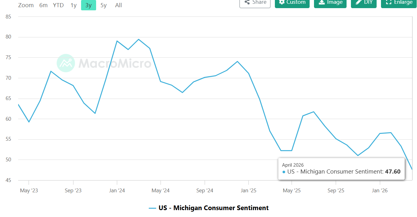 The most striking data point of the week may have been the University of Michigan preliminary consumer sentiment reading for April: 47.6, down 5.7 points from March and among the weakest readings in years. One-year inflation expectations jumped to 4.8%, up a full percentage point from March. When gasoline hits $4.12 at the pump, when real earnings are negative, sentiment does not recover in a week because the president posted a ceasefire announcement on social media. The Trump approval trajectory, in a midterm election year, is a political risk factor that institutional allocators are beginning to model -- deteriorating approval against a backdrop of high gasoline prices and declining real wages creates policy pressure that is not always market-friendly.