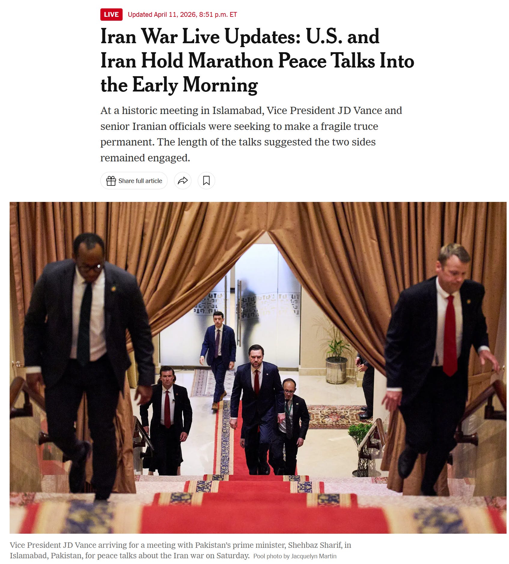 By Thursday and into Friday, physical flow through the Strait of Hormuz had not resumed. The Strait remained closed. Oil, which had sold off violently on the ceasefire announcement, began drifting back toward $100 per barrel, with Brent settling near $96 by week’s end. Iran’s parliamentary speaker publicly accused the United States of violating the terms of the ceasefire agreement. Trump, in turn, warned on Friday of renewed military strikes if talks collapse. The ceasefire is set to expire April 21 -- and that date now functions as the single most important near-term risk event for global markets.