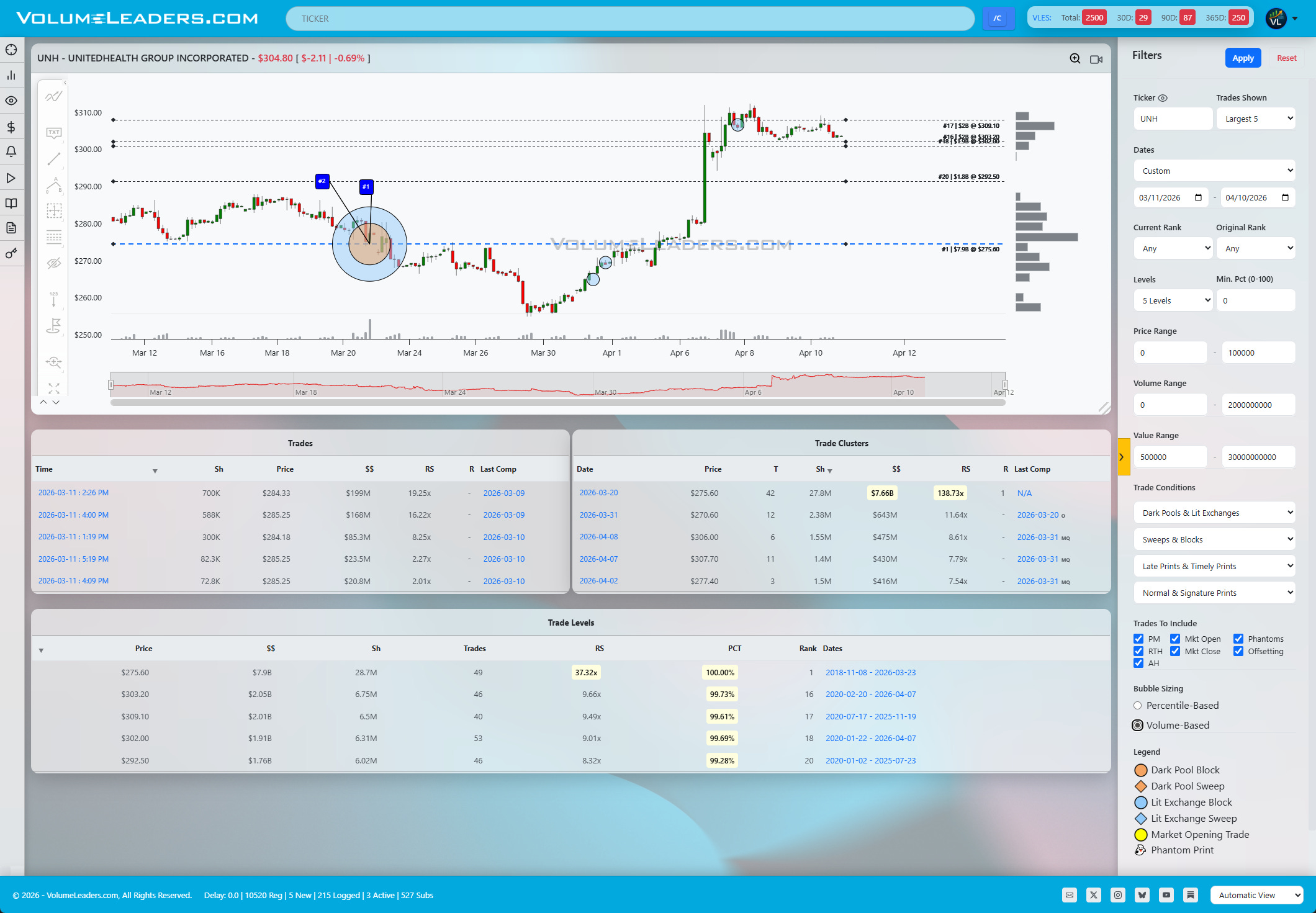 Only VolumeLeaders gives you the infrastructure to contextualize every print against the full history of a ticker -- so when the number-one and number-two all-time blocks land at the same level on the same day, you are not guessing at significance, you are reading rank. The built-in filters and alerts for ranked prints mean a setup like $275.60 in UNH never slips past you unnoticed. Like I always say: number ones rarely disappoint.